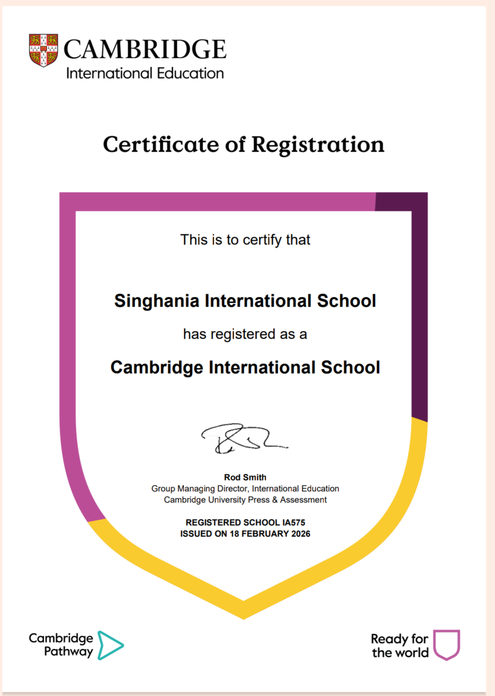 Welcome to Singhania International School, where we believe every child has the potential to excel and make a meaningful difference in the world. Our partnership with Cambridge University and our commitment to the IB curriculum ensures that your child receives a world-class education.